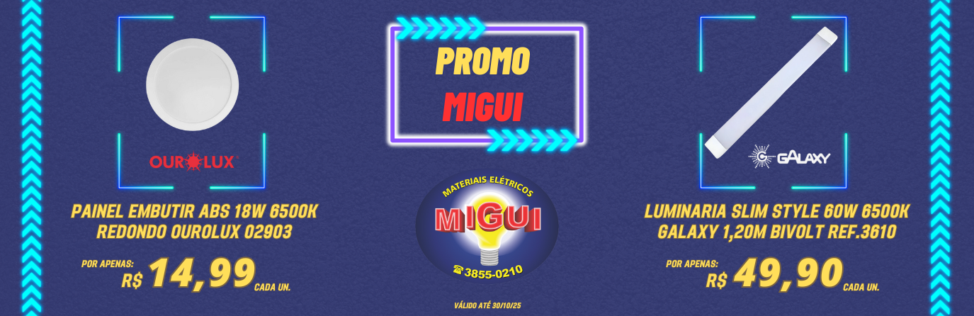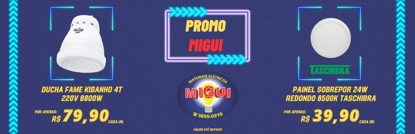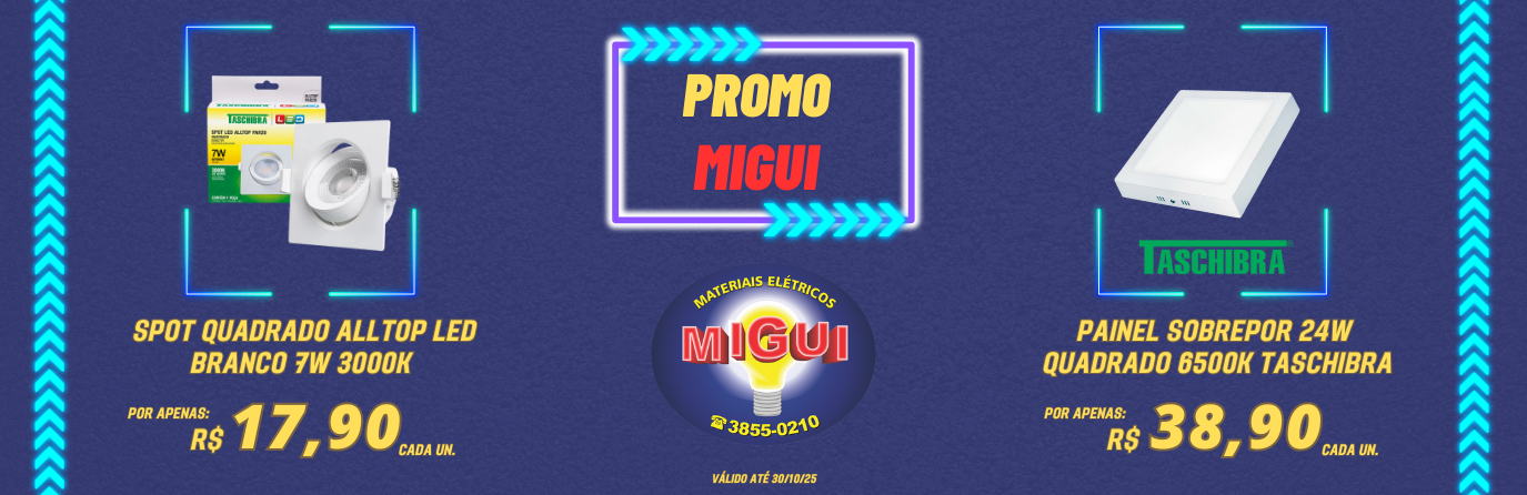A Migui Elétrica possui uma variedade de produtos de alta excelência, com preços que cabem no seu bolso. Dispomos desde de lâmpadas até lustres de alta qualidade para garantir que seu ambiente seja bem iluminado.